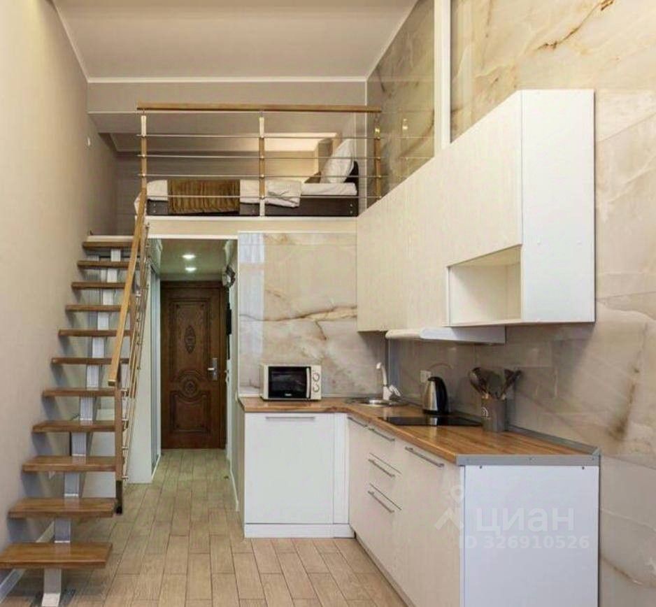 Двухуровневые апартаменты площадью 19,9 м² в апарт-отеле.