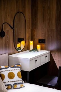 Здание включает в себя гостиницу из 20 номеров, оформленных в современном стиле.
