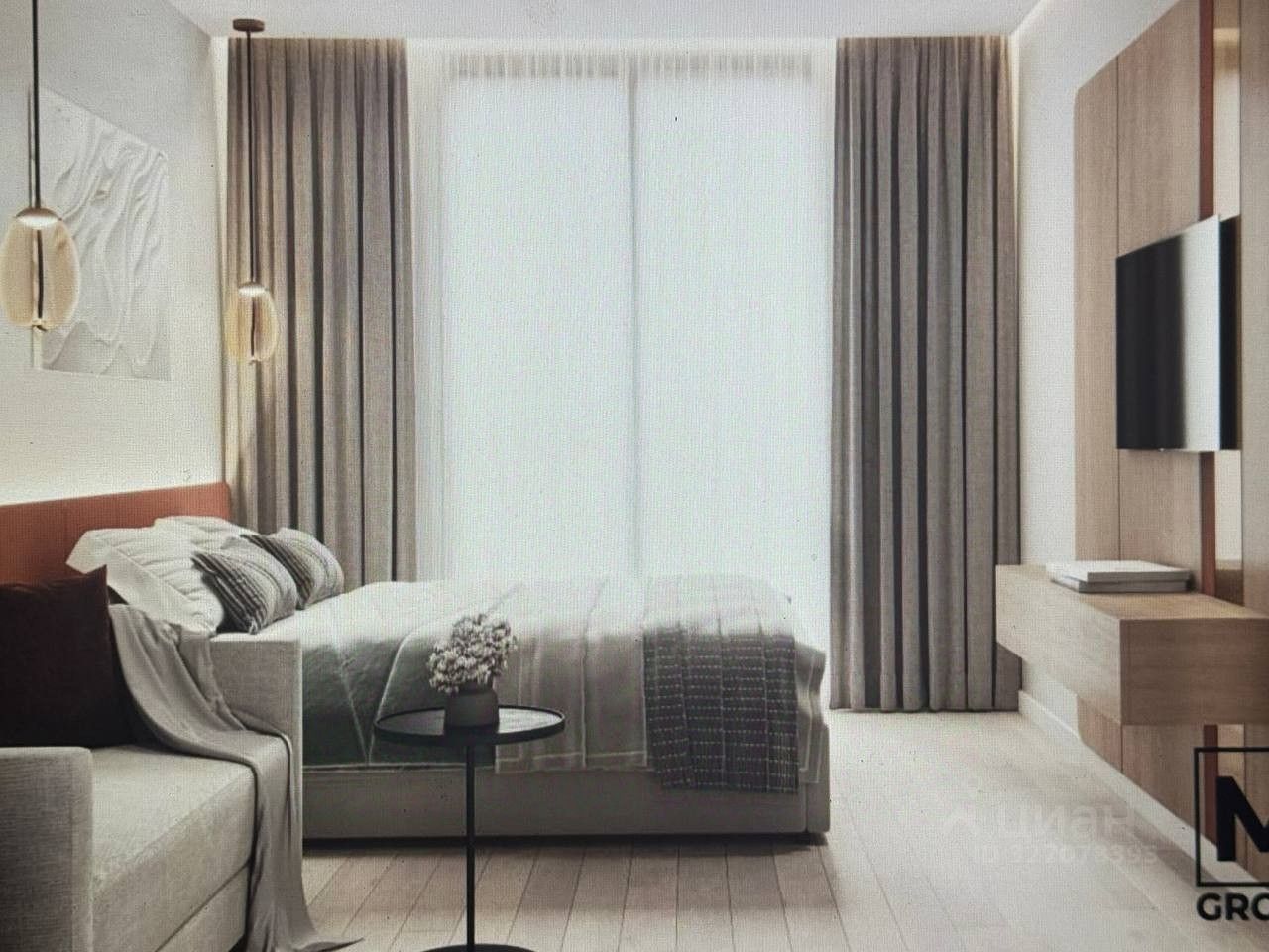 На фото типовой ремонт от застройщика, апартамент в черновом варианте. Вид на бассейн, во двор.