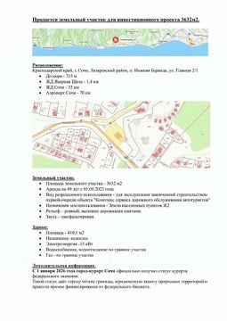 • Ограниченное количество земельных участков для коммерческого использования на участке Дагомыс - Лазаревское.