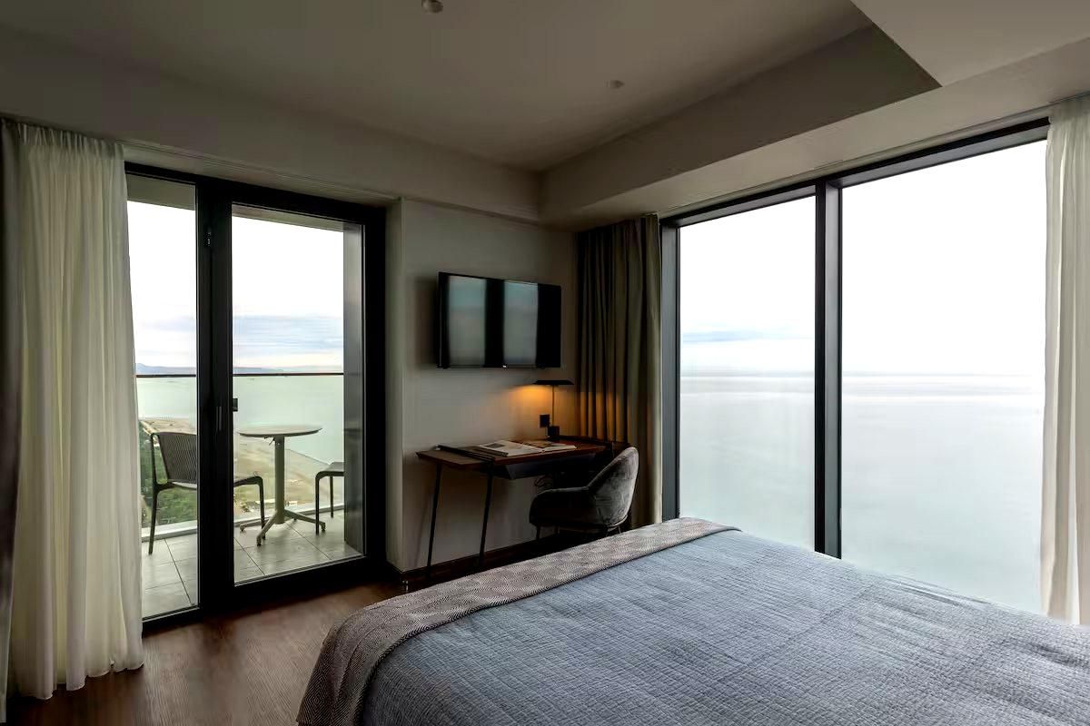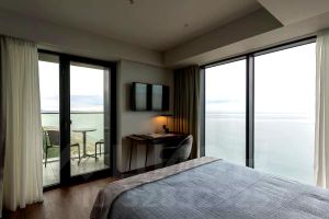 Номер под ключ включая тапочки. Отдельная спальная комната, Кухня гостиная, санузел, балкон с видом на море.