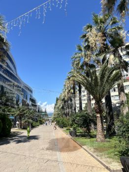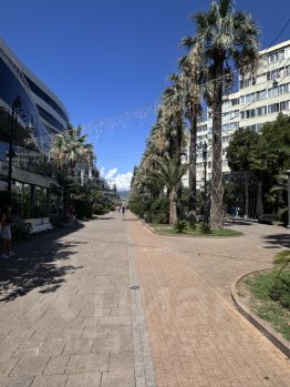 вид из окон: на красивую прогулочную зону и Навагинскую улицу;