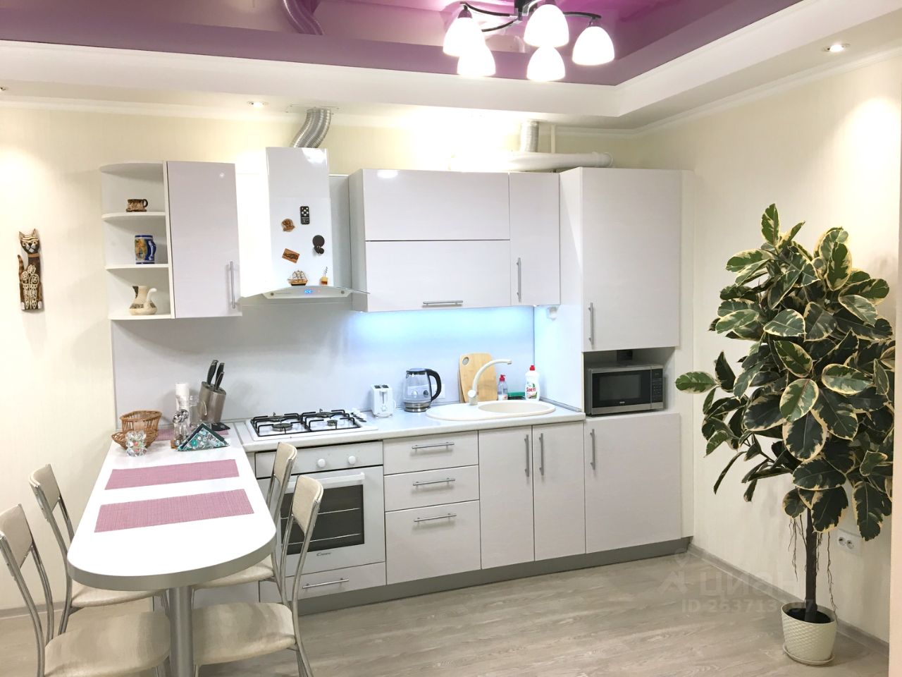 Квартира оснащена дизайнерской заказной мебелью и качественной бытовой техникой.