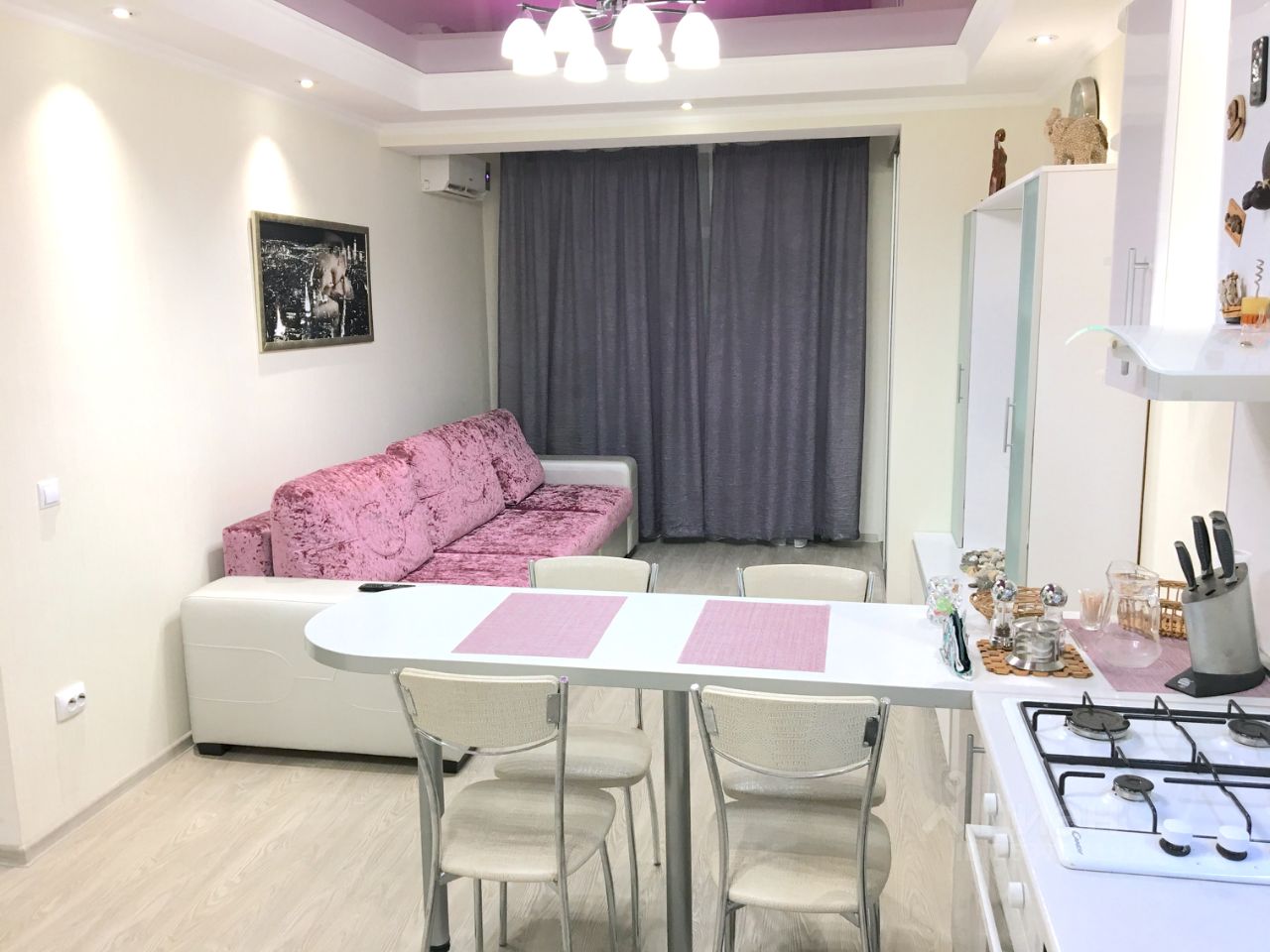 + Гостиная-студия с панорамным окном, совмещенная с кухней;