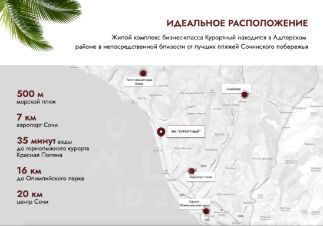 ЖК "Курортный" - это жилой комплекс агломерат бизнес класса, возводимый в Адлере в 900 метрах от береговой линии!