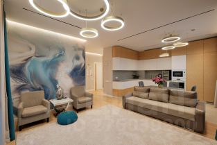 Еще один важный аспект полная готовность квартиры для жизни. Выполнен очень качественный ремонт, который отличается высокой долей эстетики и продуманностью деталей. Вся мебель и даже бытовая техника подбиралась авторами проекта в соответствии с общей стилистической концепцией.