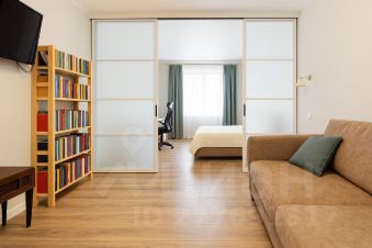 Гостиная легко зонируется на две части (под потолком предусмотрена закладная под раздвижную перегородку)