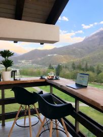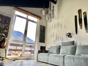 Квартира расположена в удаленном, от шума зимнего курорта месте, где никто не сможет помешать вашему отдыху и единению с природой. С просторной террасы открывается невероятный вид на горные вершины.