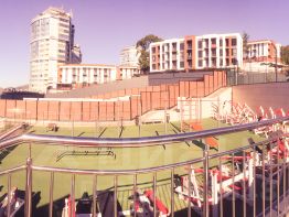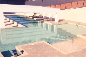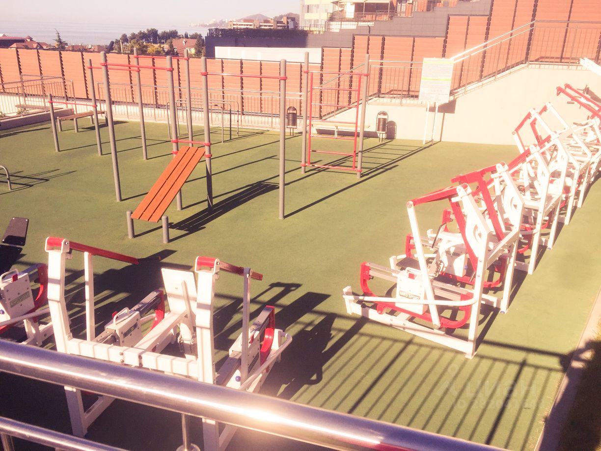 На внутренней территории двора выделена огромная площадь под спортивные объекты. На ней расположился открытый круглогодичный, подогреваемый бассейн площадью 500 м2, детский городок, многофункциональные спортивные площадки, теннисный корт и зоны для кросс-фита.