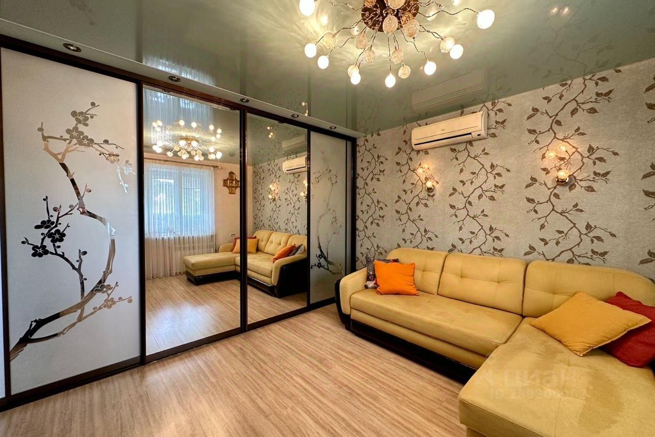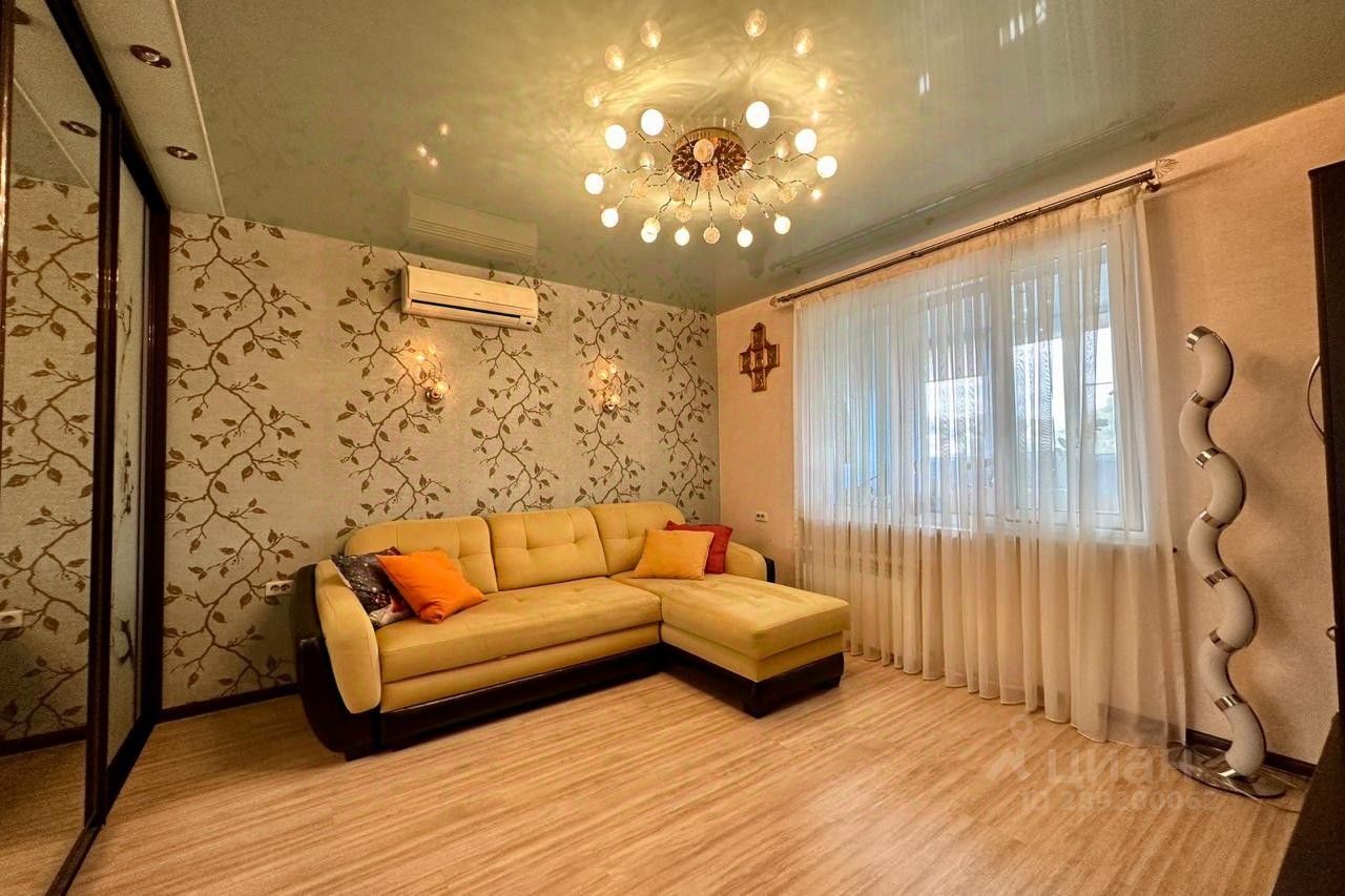 Площадь представленной квартиры 66 м2. Выделено три изолированные спальные комнаты, кухня, с ложией, встроенный шкаф, и санузел. Также в квартире есть застеклённый балкон с прямым видом на морскую акваторию.
