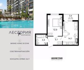 Продается квартира в жилом комплексе бизнес-класса "Лестория". В составе ЖК предусмотрена собственная аквазона площадью 473 квадратных метра с двумя подогреваемыми бассейнами, что соответствуют стандартам бизнес-класса. Аквазона объединяет взрослый и детский бассейны. В welcome-zone к услугам посетителей шезлонги и все необходимые принадлежности. Раздевалки с душевыми комнатами, инфракрасная сауна — здесь все предусмотрено для комфортного отдыха и полного расслабления. Для водного комплекса продуман отдельный вход, оборудованный системой контроля и управления доступом (СКУД). Аквазона только часть уникальной инфраструктуры "Лестории", которая включает в себя также благоустроенную территорию с пятьюдесятью функциональными зонами для прогулок, отдыха и занятий спортом, видовые террасы на крышах для отдыха, работы и встреч с друзьями, а также пространство набережной Кудепсты с шезлонгами и перголами. Жилой комплекс "Лестория" состоит из шести домов высотностью от 15 до 17 этажей, окружённых зеленым массивом национального парка. На придомовой территории для жителей предусмотрены закрытые дворы с круглосуточным видеонаблюдением, активити-центр для детей и подростков, тихие зоны для отдыха и медитации. На крышах домов будут созданы зеленые террасы для наслаждения прекрасными видами на море и горы. В проекте предусмотрены разные варианты отделки квартир под потребности покупателей. Тем, кто хочет воплотить в жизнь собственные интерьерные задумки, подойдут квартиры без ремонта. Для комфортной жизни и отдыха в комплексе будет работать круглосуточный консьерж-сервис уровня 5*, который с легкостью закроет все ежедневные потребности: от заказа продуктов и встречи гостей в аэропорту до выгула и дрессировки питомца. К услугам жителей ЖК "Лестория" — собственная управляющая компания, для инвесторов предоставляются услуги доверительного управления.