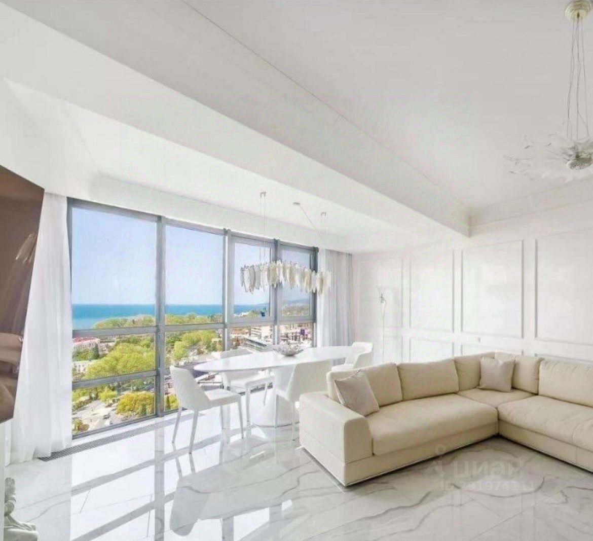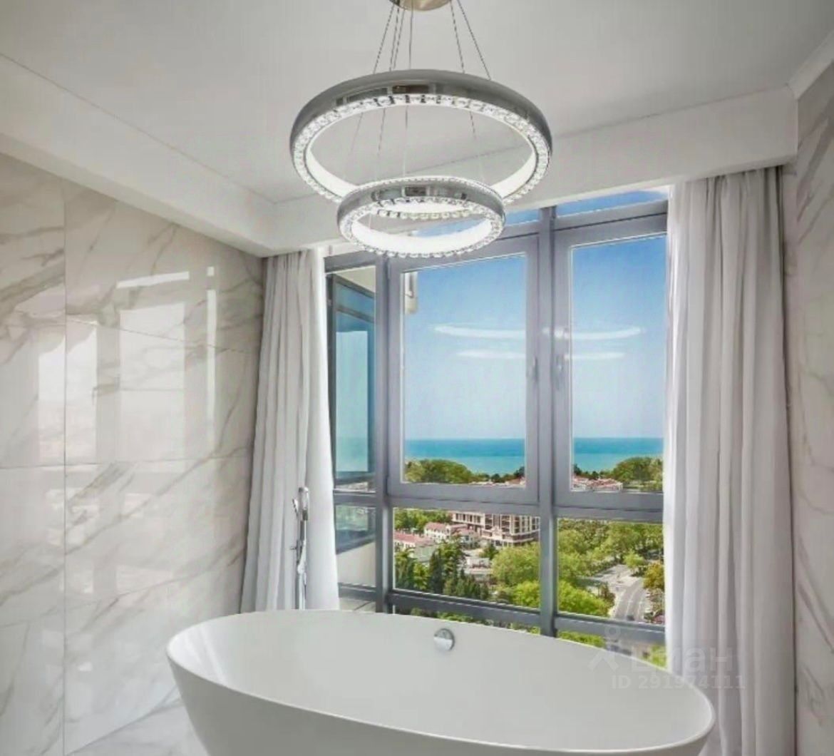 Планировка: спальная комната, большая кухня-гостиная, ванная комната с панорамным видом. Окна выходят на Морской порт, море и город.