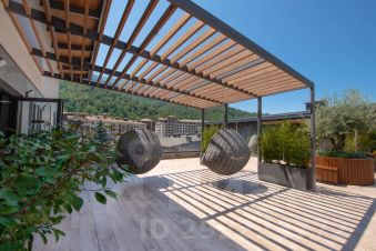 Есть красивый подогреваемый бассейн, с использованием круглый год. Также по периметру территории оборудованы lounge-зоны для отдыха на свежем воздухе.