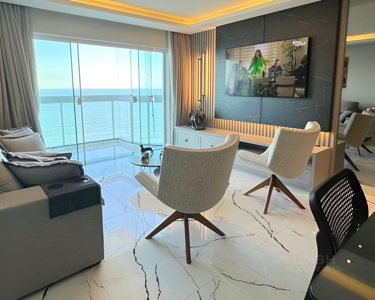 В апартаментах выполнен новый, современный ремонт. Из окон открывается шикарный, панорамный вид на море.