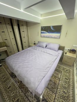 Светлая студия с дизайнерским ремонтом, с 2-мя санузлами (на 1-м уровне совмещаемый с душевой кабиной, на 2-м уровне - туалет), новое кухонное оборудование, 2 (две) большие гардеробные на 2(двух) уровнях и уютная спальня на 2-м уровне.