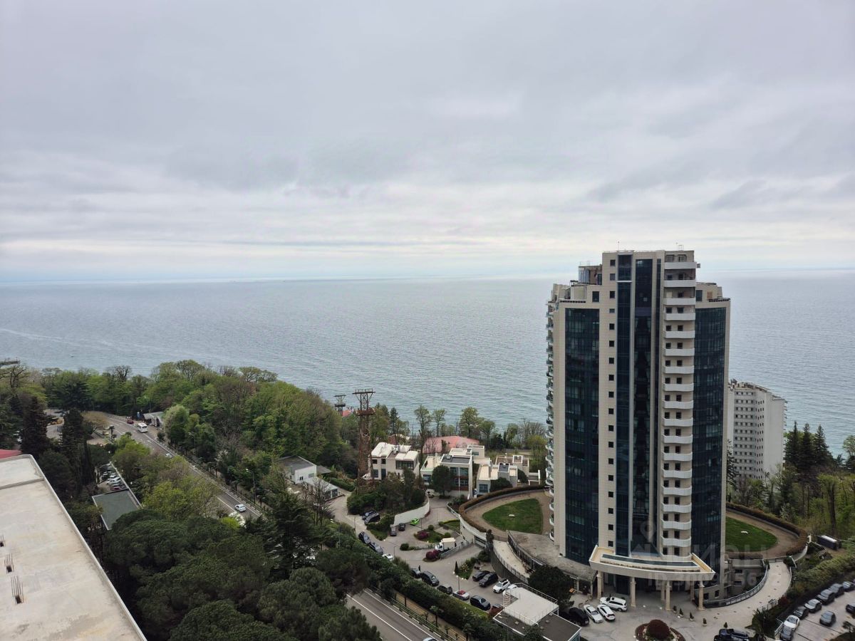 Квартира располагается на 17 эт. общей площадью 90 кв.м ; с двумя спальнями, гостиной с кухонной зоной, 2 санузла и огромная лоджия 15 кв.м , во всех комнатах панорамные окна с видом на город, горы и море.
