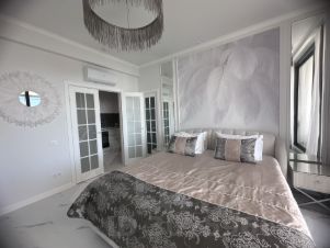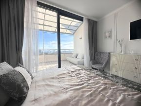 Квартира с интересной планировкой - выделена кухня-гостиная с диваном, большая гардеробная комната и спальня. Изюминкой данного предложения является потрясающая большая открытая терраса с красивым панорамным видом на море, горы и город! На террасе уже установлена мебель, на которой Вы сможете насладиться утренней чашкой кофе, полюбоваться вечерним красивым закатом или провести время в большой компании друзей.