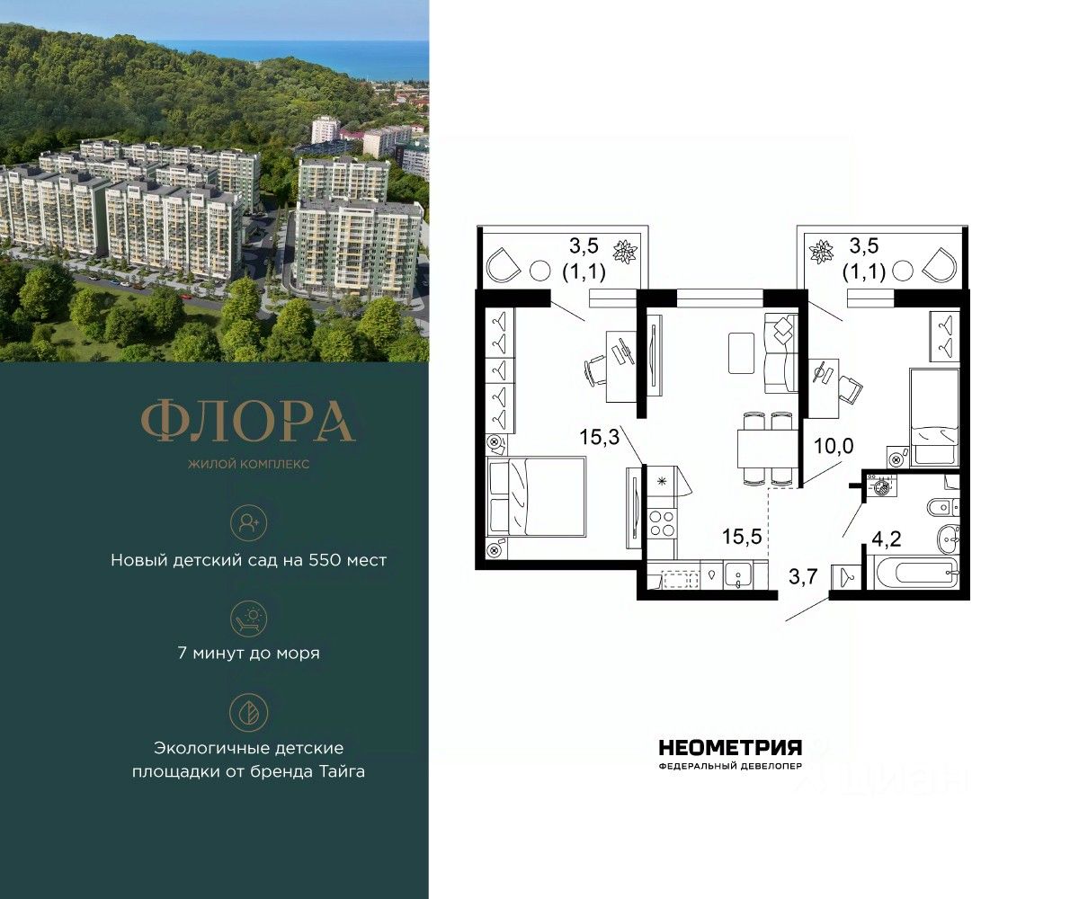 Продается квартира в ЖК "Флора" от федерального девелопера "Неометрия". Это жилой комплекс комфорт-класса в самом зеленом районе Сочи. При проектировании постарались максимально сохранить окружающую флору и фауну. Теплое море, горы, целебные источники, река, близость заповедника все это уже рядом с вами.