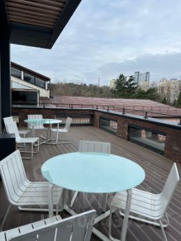 Стильный дизайн: в отделке здания используются высококачественные материалы: витражное остекление, керамический гранит, натуральный травертин.