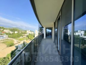 Лучшая планировка в комплексе, западная сторона, вид на хвойные вершины деревьев, море, город.
