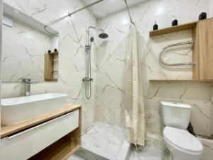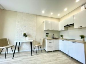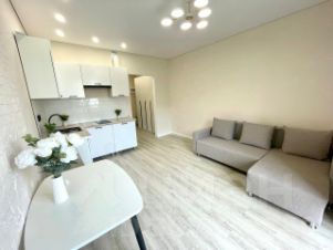 Квартира-студия 26,5кв.м. с учетом балкона. 5/12-эт. Ремонт под ключ. Осталось доделать :стены обои, шторы, стулья, зеркало в ванную. Мелкие предметы декора: картины, зелень, коврики, полки в ванную. до конца ноября будет готова.