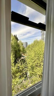 Панорамные окна на 4 этаже из которых открывается вид на Поцелуевский сквер.