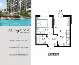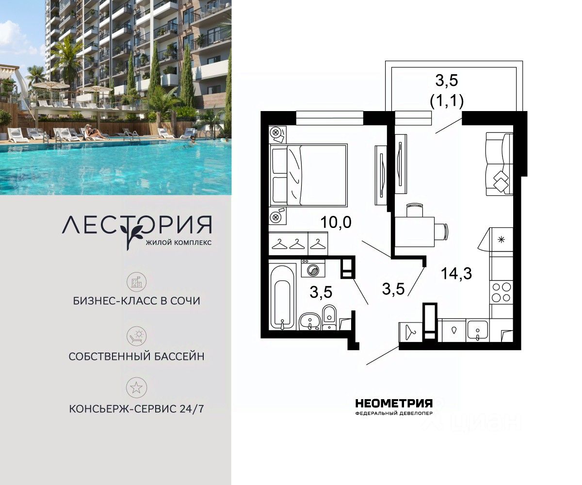 Продается квартира в жилом комплексе бизнес-класса "Лестория". В составе ЖК предусмотрена собственная аквазона площадью 473 квадратных метра с двумя подогреваемыми бассейнами, что соответствуют стандартам бизнес-класса. Аквазона объединяет взрослый и детский бассейны. В welcome-zone к услугам посетителей шезлонги и все необходимые принадлежности. Раздевалки с душевыми комнатами, инфракрасная сауна — здесь все предусмотрено для комфортного отдыха и полного расслабления. Для водного комплекса продуман отдельный вход, оборудованный системой контроля и управления доступом (СКУД). Аквазона только часть уникальной инфраструктуры "Лестории", которая включает в себя также благоустроенную территорию с пятьюдесятью функциональными зонами для прогулок, отдыха и занятий спортом, видовые террасы на крышах для отдыха, работы и встреч с друзьями, а также пространство набережной Кудепсты с шезлонгами и перголами. Жилой комплекс "Лестория" состоит из шести домов высотностью от 15 до 17 этажей, окружённых зеленым массивом национального парка. На придомовой территории для жителей предусмотрены закрытые дворы с круглосуточным видеонаблюдением, активити-центр для детей и подростков, тихие зоны для отдыха и медитации. На крышах домов будут созданы зеленые террасы для наслаждения прекрасными видами на море и горы. В проекте предусмотрены разные варианты отделки квартир под потребности покупателей. Тем, кто хочет воплотить в жизнь собственные интерьерные задумки, подойдут квартиры без ремонта. Для комфортной жизни и отдыха в комплексе будет работать круглосуточный консьерж-сервис уровня 5*, который с легкостью закроет все ежедневные потребности: от заказа продуктов и встречи гостей в аэропорту до выгула и дрессировки питомца. К услугам жителей ЖК "Лестория" — собственная управляющая компания, для инвесторов предоставляются услуги доверительного управления.