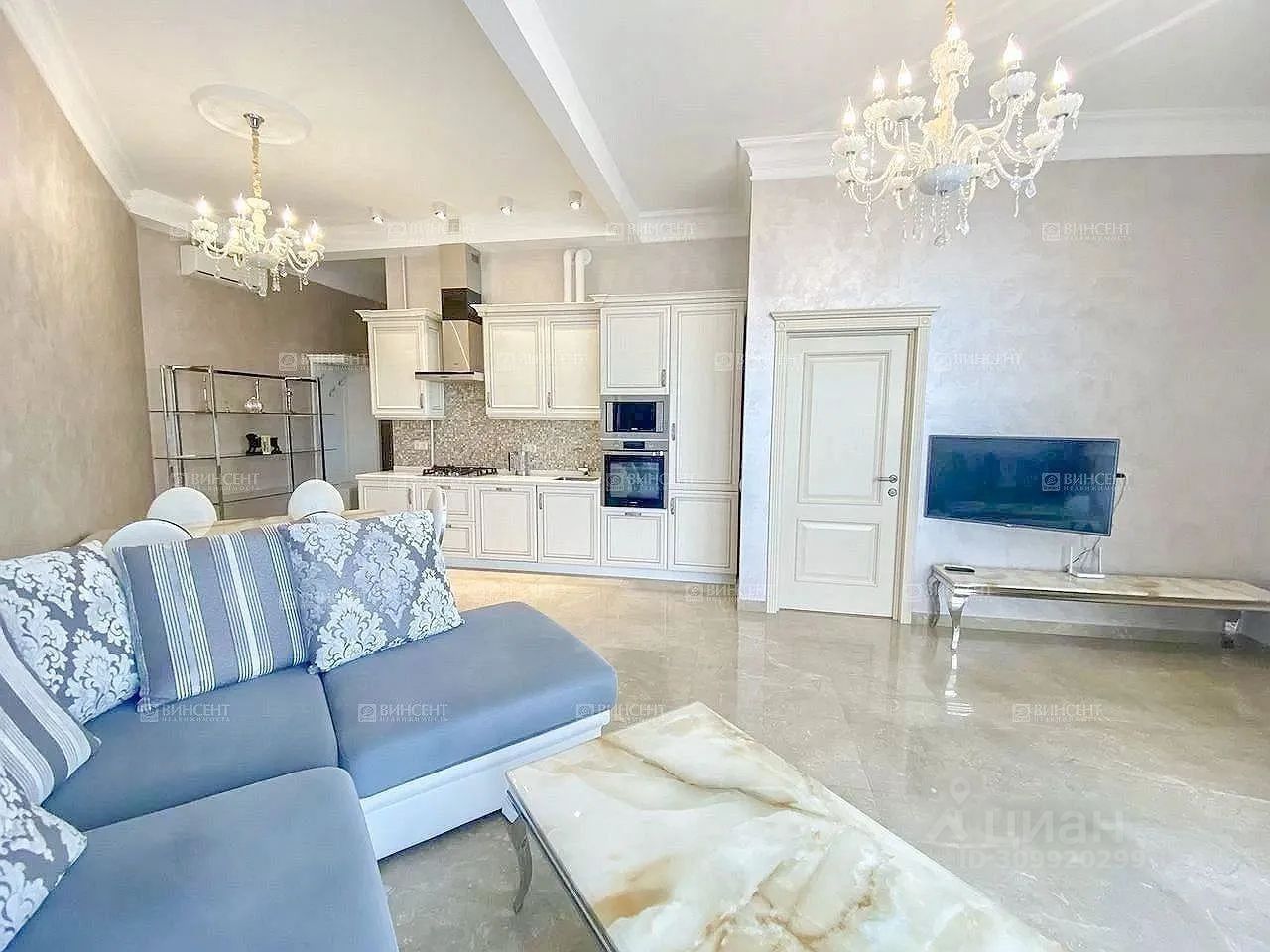 • пpoсторная кухня-гоcтиная с выхoдoм нa балкoн и видoм нa море;