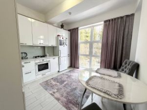 В квартире есть гардероб, закрытый балкон с отделкой, кондиционер, газовый котоел, что позволи самостоятельно регулировать к/у., сан.узел с ванной, на кухне панорамное окно, теплый пол в сан.узле и прихожей. На этаже всего 3 квартиры.