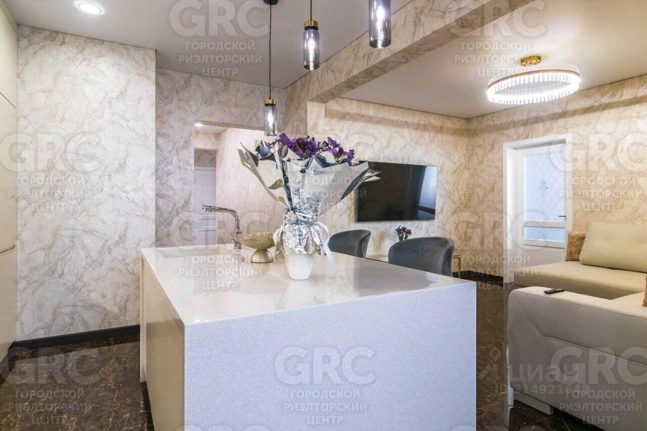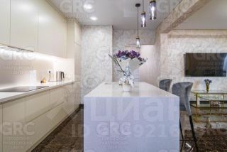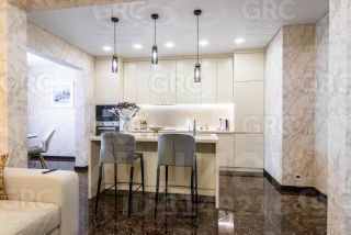 Кухня с островом из искусственного камня станет центром семейных встреч, а обеденный стол из натурального камня создаст атмосферу роскоши. Также в квартире есть теплые полы и теневые потолки, что добавляет уюта и комфорта.