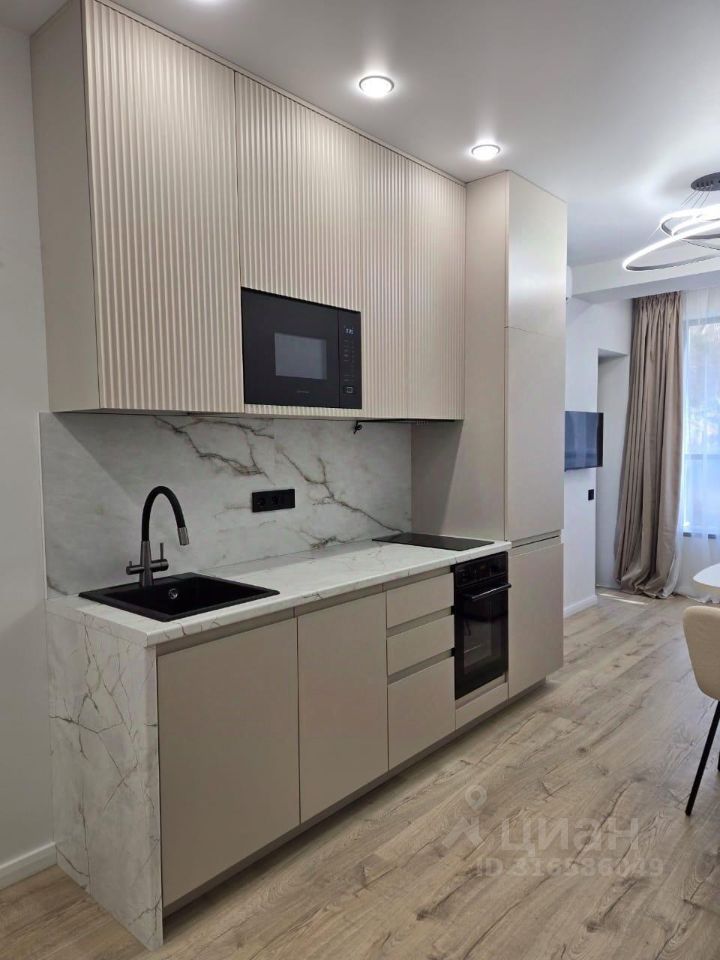 Современная кухня до потолка со встроенной техникой (холодильник, посудомойка, варочная панель, духовой шкаф, СВЧ, вытяжка). Встроенный шкафа-купе системы Ариста с навесными системами. Двухспальная кровать с подъемным механизмом и матрас. Диван фирма Аскона. Два кондиционера, система обратный осмос для питьевой воды, телевизор, стиральная машина.