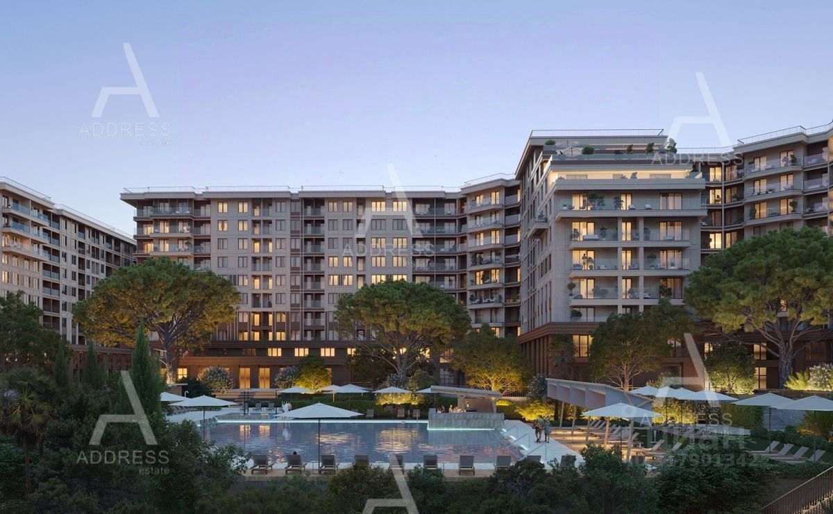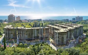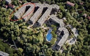 Апартаменты расположены в первой очереди (корпус 1, секция 1 - на фото отмечено). В данном корпусе можно как жить самому, так и сдавать как гостиничный комплекс. Вид боковой на море. Высокий этаж - 5.