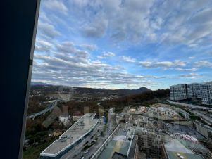 Просторная и светлая 1-комнатная квартира 45.3м² в доме бизнес-класса с панорамным остеклением, которое открывает великолепный вид на горы! Расположена на 18 этаже 19-этажного дома, эта квартира станет идеальным выбором для тех, кто ценит комфорт, стиль и приватность.