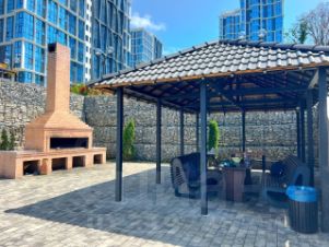 Тихий район с замечательным ландшафтным дизайном и зданиями в одном стиле с панорамным остеклением, дружелюбные соседи и отсутствие старых жилых фондов вокруг.