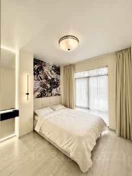 В квартире сделан дизайнерский ремонт, что создает атмосферу уюта и стиля. Просторная кухня оборудована всем необходимым для комфортного приготовления пищи. Планировка включает совмещенный санузел и обеспечивает удобство и практичность в использовании пространства. Из окон открывается вид во двор, что делает квартиру тихой и уютной. Также есть лоджия и два французских балкона, где можно насладиться утренним кофе или вечерним отдыхом.