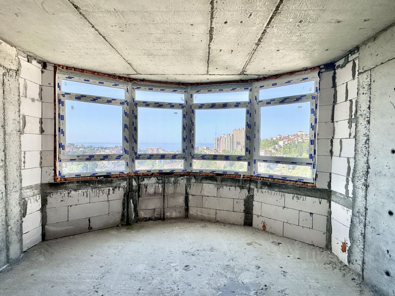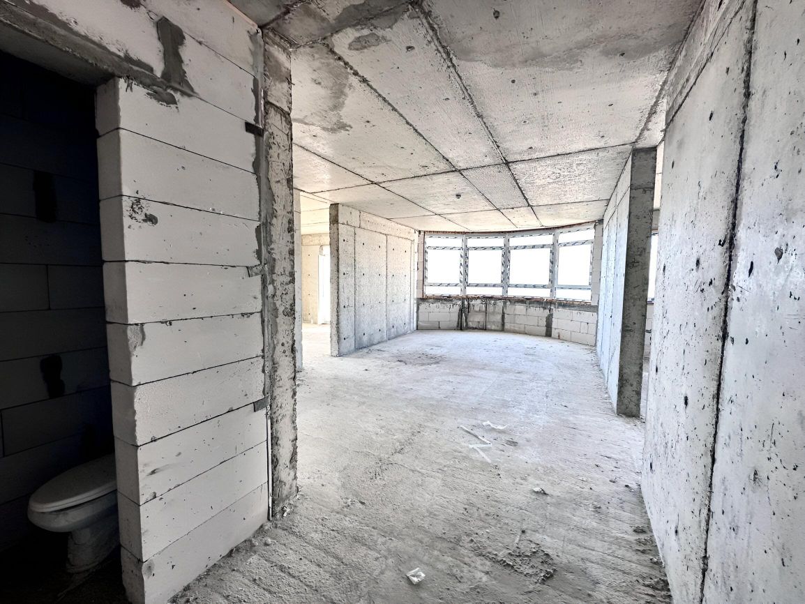 Квартира находится на 14 этаже, общая площадь — 80,1м² (без учёта балконов). Планировка включает две изолированные комнаты, кухню-гостиную, санузел. Состояние — черновая отделка. Прямой вид на море со всех окон.