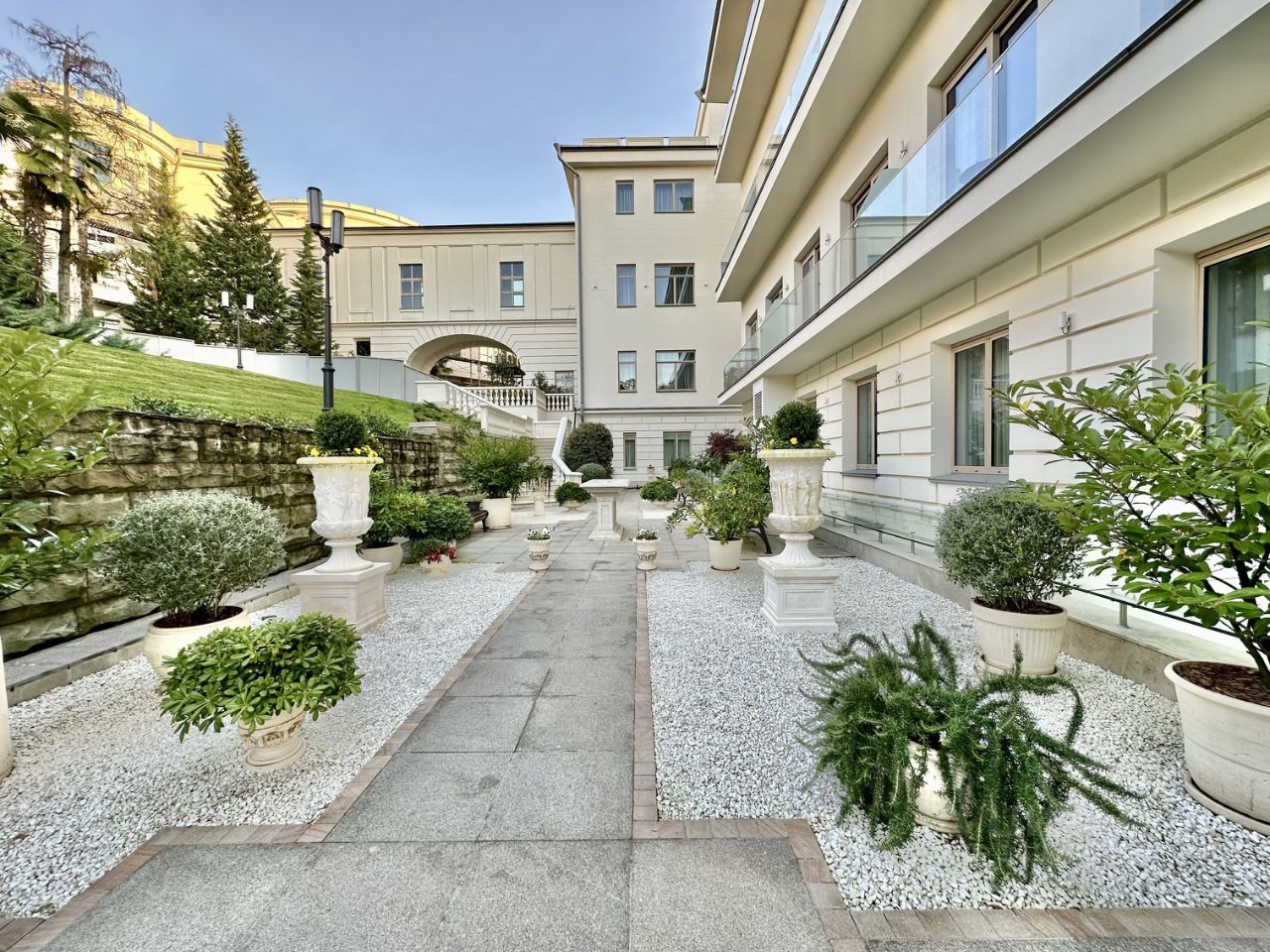 Расположение комплекса в самом сердце города Сочи с вековой историей и статусным соседством, что дает приватность и безопасность района: