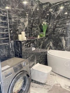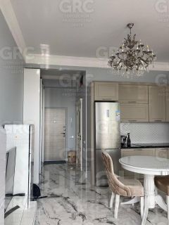 Остается встроенная мебель и техника: кухонный гарнитур, посудомоечная машинка, индукционная двухкомфорочная плита, холодильник, стиральная машинка, два шкафа-купе, кондиционер, шторы блэкаут.