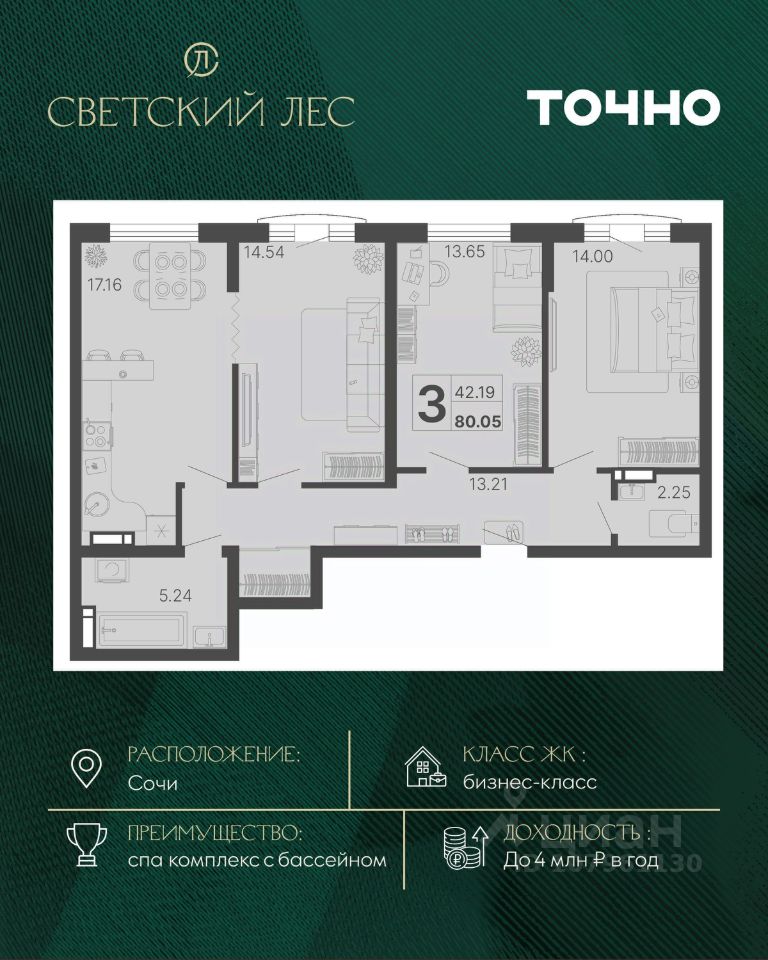 Светский лес - эксклюзивный жилой проект бизнес-класса в Сочи. Это остров цивилизации и технологий в окружении дикой природы национального парка с богатой инфраструктурой, наполненной различными сценариями премиального отдыха и жизни. Общественное пространство ЖК включает в себя прогулочные зоны, СПА комплекс с круглогодичным бассейном, детские и спортивные площадки, велодорожки, собственную набережную реки Сочи, торговую галерею с супермаркетами и ресторанами, а также инновационную школу и детский сад.