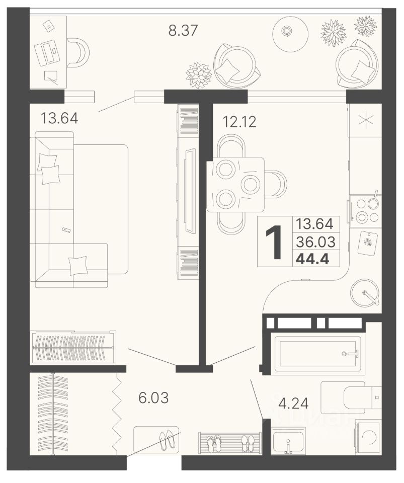 Жилая площадь13,6 м²