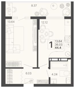Продается 1-комн. квартира, 40,22 м²