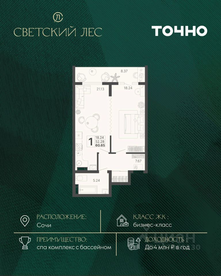 Светский лес - эксклюзивный жилой проект бизнес-класса в Сочи. Это остров цивилизации и технологий в окружении дикой природы национального парка с богатой инфраструктурой, наполненной различными сценариями премиального отдыха и жизни. Общественное пространство ЖК включает в себя прогулочные зоны, СПА комплекс с круглогодичным бассейном, детские и спортивные площадки, велодорожки, собственную набережную реки Сочи, торговую галерею с супермаркетами и ресторанами, а также инновационную школу и детский сад.