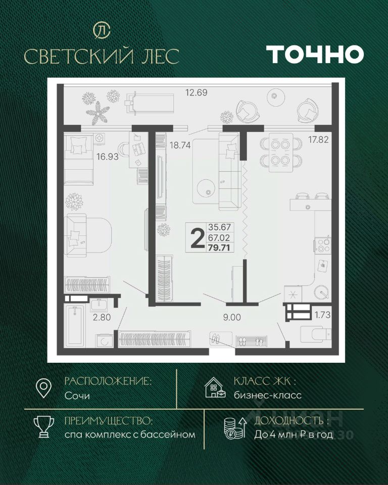 Светский лес - эксклюзивный жилой проект бизнес-класса в Сочи. Это остров цивилизации и технологий в окружении дикой природы национального парка с богатой инфраструктурой, наполненной различными сценариями премиального отдыха и жизни. Общественное пространство ЖК включает в себя прогулочные зоны, СПА комплекс с круглогодичным бассейном, детские и спортивные площадки, велодорожки, собственную набережную реки Сочи, торговую галерею с супермаркетами и ресторанами, а также инновационную школу и детский сад.