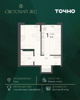 ЖК "Светский лес" — эксклюзивный жилой проект бизнес-класса в Сочи. Это остров цивилизации и технологий в окружении дикой природы национального парка с богатой инфраструктурой, наполненной различными сценариями премиального отдыха и жизни. Общественное пространство жилого комплекса включает в себя прогулочные зоны, спа-комплекс с круглогодичным бассейном, детские и спортивные площадки, велодорожки, собственную набережную реки Сочи, торговую галерею с супермаркетами и ресторанами, а также инновационную школу на 1510 мест и детский сад на 510 мест. Квартира в ЖК "Светский лес" — идеальный вариант как для жизни у моря, так и для инвестиций. Удобный сервис доверительного управления позволит легко зарабатывать на недвижимости в ЖК "Светский лес" до 4 млн. руб. в год.*