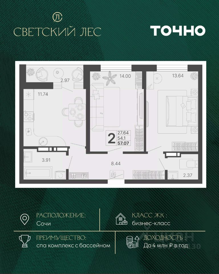 Светский лес - эксклюзивный жилой проект бизнес-класса в Сочи. Это остров цивилизации и технологий в окружении дикой природы национального парка с богатой инфраструктурой, наполненной различными сценариями премиального отдыха и жизни. Общественное пространство ЖК включает в себя прогулочные зоны, СПА комплекс с круглогодичным бассейном, детские и спортивные площадки, велодорожки, собственную набережную реки Сочи, торговую галерею с супермаркетами и ресторанами, а также инновационную школу и детский сад.