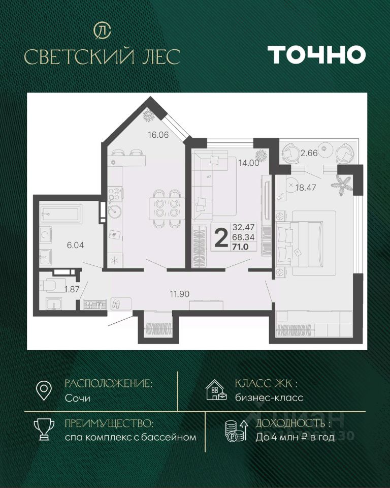Светский лес - эксклюзивный жилой проект бизнес-класса в Сочи. Это остров цивилизации и технологий в окружении дикой природы национального парка с богатой инфраструктурой, наполненной различными сценариями премиального отдыха и жизни. Общественное пространство ЖК включает в себя прогулочные зоны, СПА комплекс с круглогодичным бассейном, детские и спортивные площадки, велодорожки, собственную набережную реки Сочи, торговую галерею с супермаркетами и ресторанами, а также инновационную школу и детский сад.