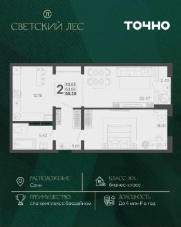 ЖК "Светский лес" — эксклюзивный жилой проект бизнес-класса в Сочи. Это остров цивилизации и технологий в окружении дикой природы национального парка с богатой инфраструктурой, наполненной различными сценариями премиального отдыха и жизни. Общественное пространство жилого комплекса включает в себя прогулочные зоны, спа-комплекс с круглогодичным бассейном, детские и спортивные площадки, велодорожки, собственную набережную реки Сочи, торговую галерею с супермаркетами и ресторанами, а также инновационную школу на 1510 мест и детский сад на 510 мест. Квартира в ЖК "Светский лес" — идеальный вариант как для жизни у моря, так и для инвестиций. Удобный сервис доверительного управления позволит легко зарабатывать на недвижимости в ЖК "Светский лес" до 4 млн. руб. в год.*