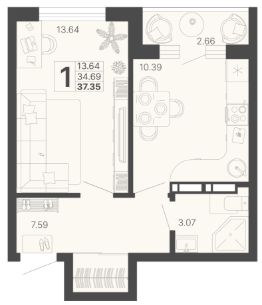 Продается 1-комн. квартира, 36,02 м²