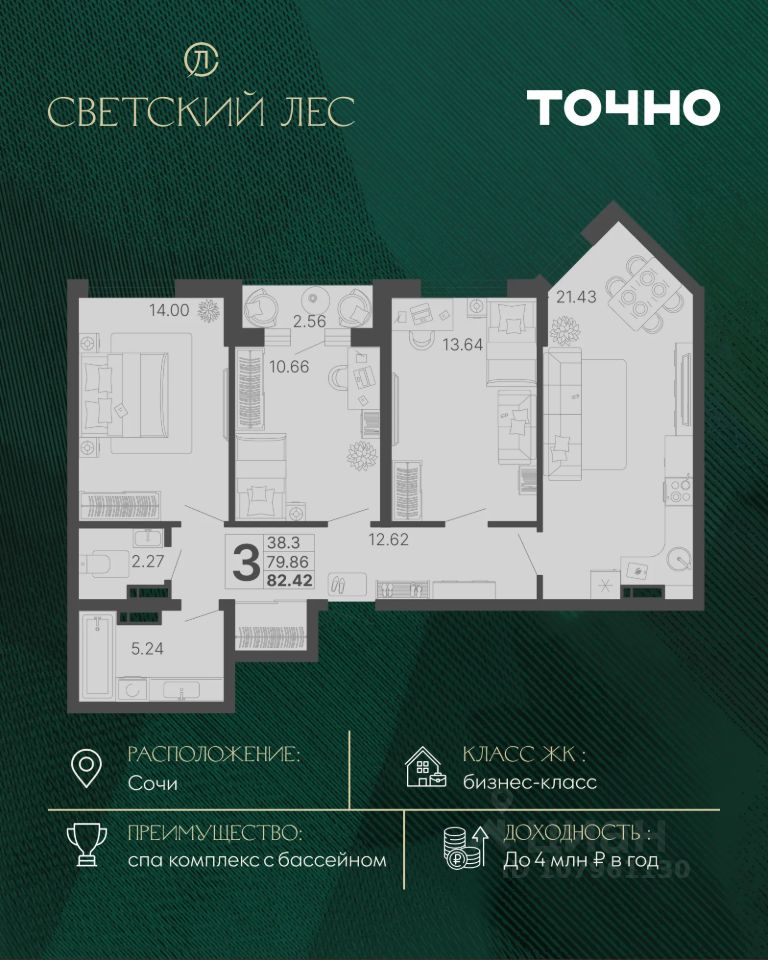 ЖК "Светский лес" — эксклюзивный жилой проект бизнес-класса в Сочи. Это остров цивилизации и технологий в окружении дикой природы национального парка с богатой инфраструктурой, наполненной различными сценариями премиального отдыха и жизни. Общественное пространство жилого комплекса включает в себя прогулочные зоны, спа-комплекс с круглогодичным бассейном, детские и спортивные площадки, велодорожки, собственную набережную реки Сочи, торговую галерею с супермаркетами и ресторанами, а также инновационную школу на 1510 мест и детский сад на 510 мест. Квартира в ЖК "Светский лес" — идеальный вариант как для жизни у моря, так и для инвестиций. Удобный сервис доверительного управления позволит легко зарабатывать на недвижимости в ЖК "Светский лес" до 4 млн. руб. в год.*
