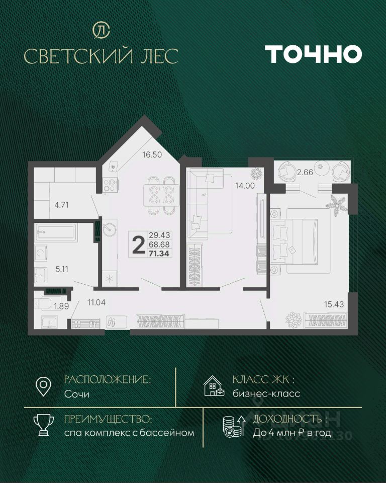 Светский лес - эксклюзивный жилой проект бизнес-класса в Сочи. Это остров цивилизации и технологий в окружении дикой природы национального парка с богатой инфраструктурой, наполненной различными сценариями премиального отдыха и жизни. Общественное пространство ЖК включает в себя прогулочные зоны, СПА комплекс с круглогодичным бассейном, детские и спортивные площадки, велодорожки, собственную набережную реки Сочи, торговую галерею с супермаркетами и ресторанами, а также инновационную школу и детский сад.